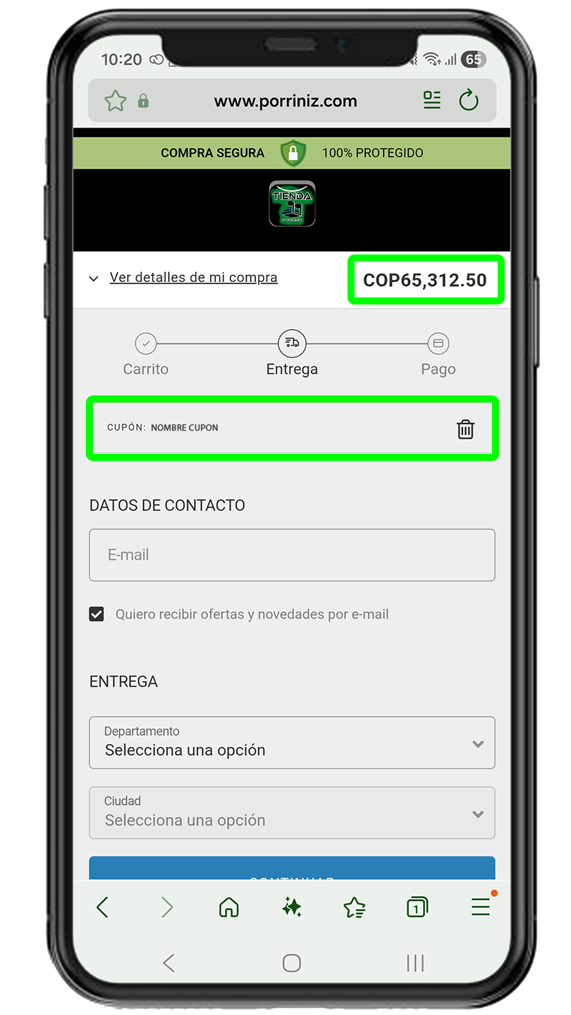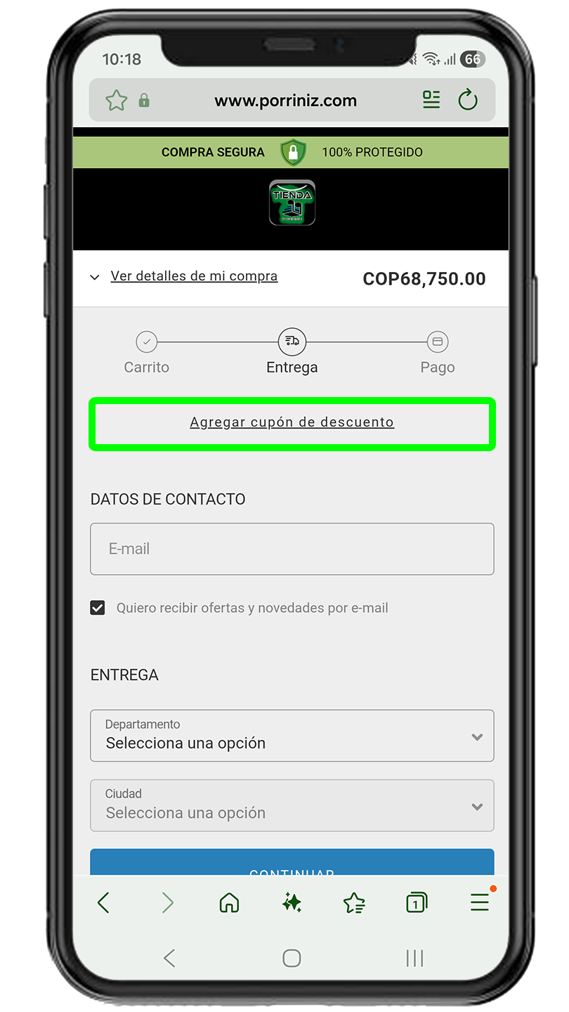 Para activar o redimir cupones de descuento en Tienda Porriniz es muy fácil en Teléfono o PC.