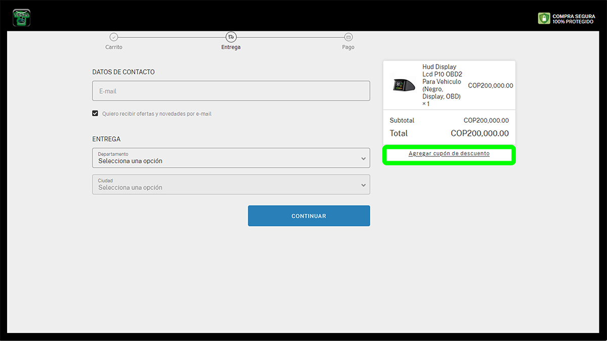 Cuando ya tengas seleccionado tus productos en esta sección antes de realizar el pago vas a seleccionar la opción subrayada en el recuadro verde que tiene el texto: