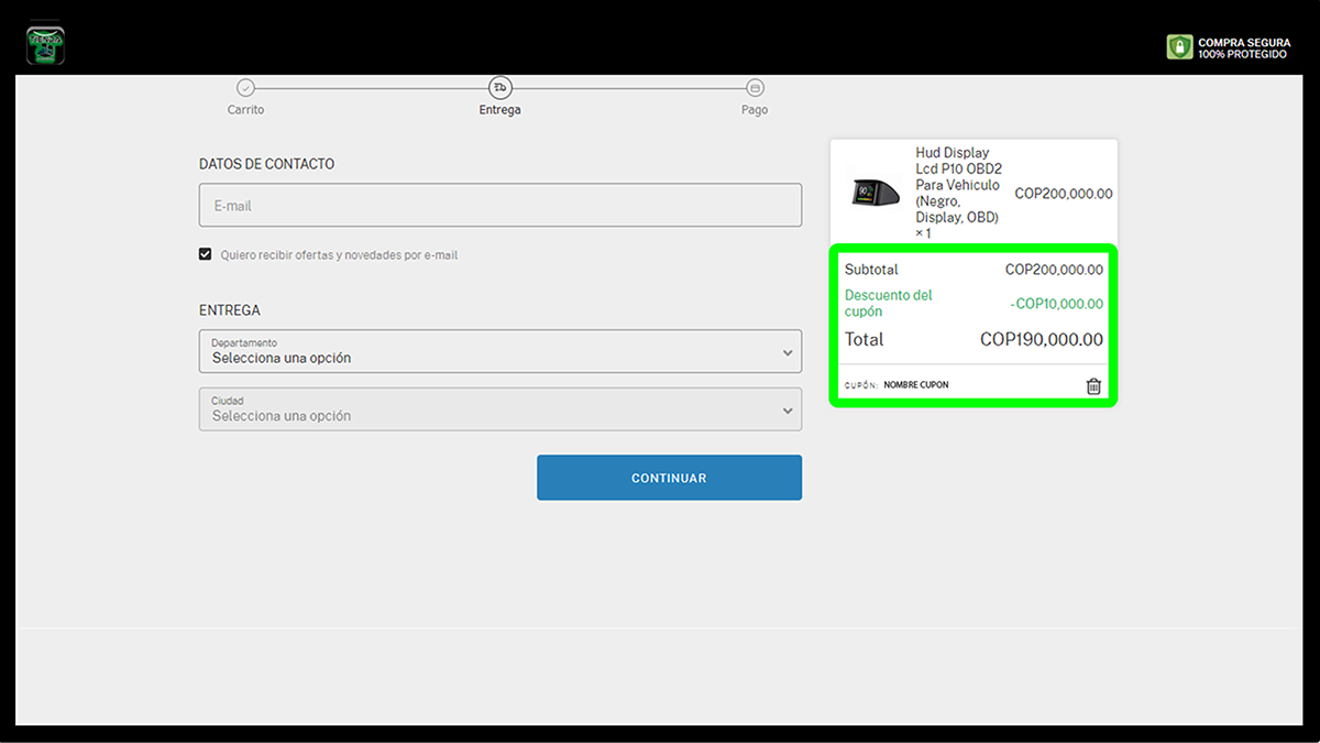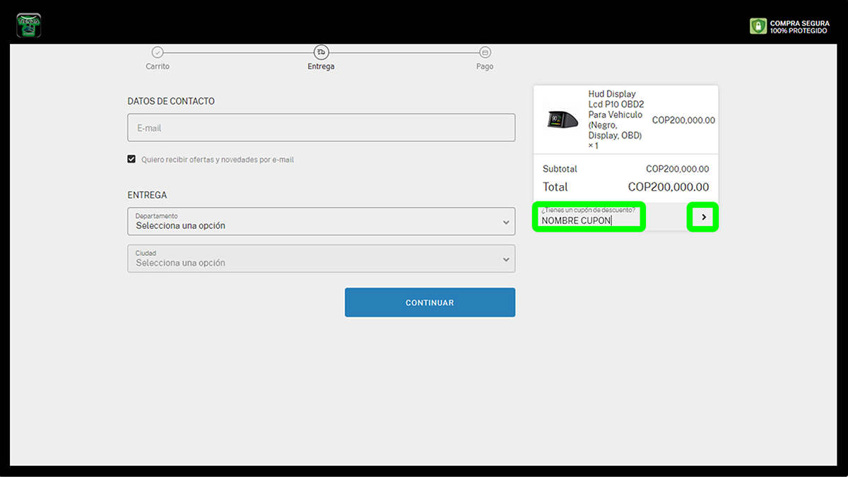 En este caso nuestro cupón a redimir es: NOMBRE CUPÓN